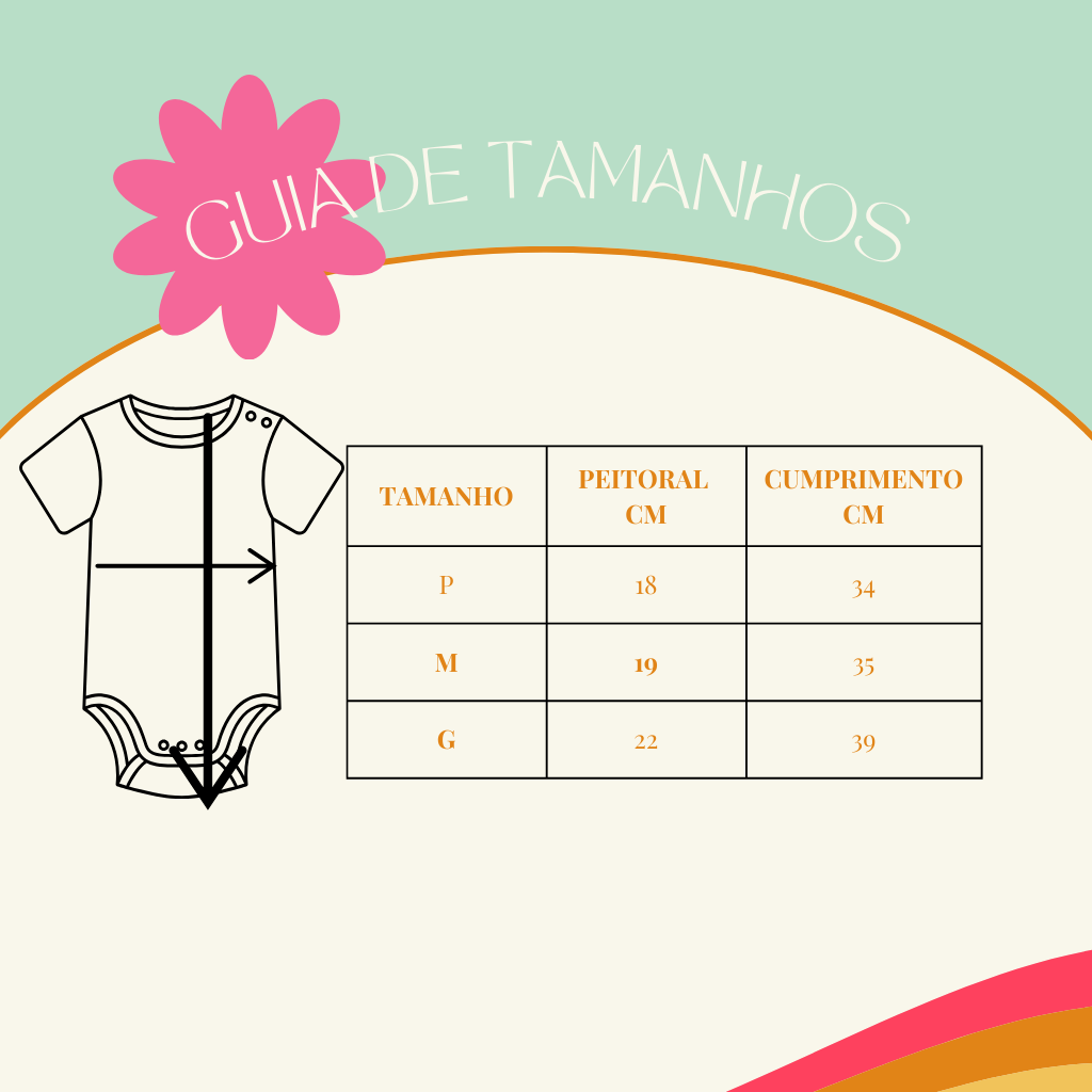 Conheça o Body Manga Curta, a escolha perfeita para manter seu pequeno confortável e estiloso nos dias quentes! Este body é confeccionado em 100% algodão, um tecido macio e resistente que proporciona um toque suave na pele.